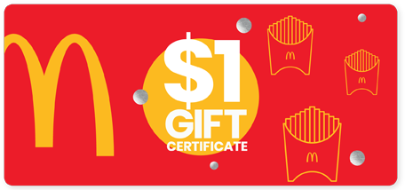Give your friends and family the gift of simple pleasures. With McDonald’s Gift Certs, let our food be the symbol of your love when words alone simply aren’t enough! Our Gift Certs come in $10 booklets consisting of ten $1 coupons that work just like cash at any McDonald’s restaurant. Please note that our Gift Certs only come in $1 denomination.